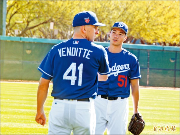 投入道奇春训逾半个月,李振昌感受到亲和力,包括一起传接球的凡迪特(Pat Venditte