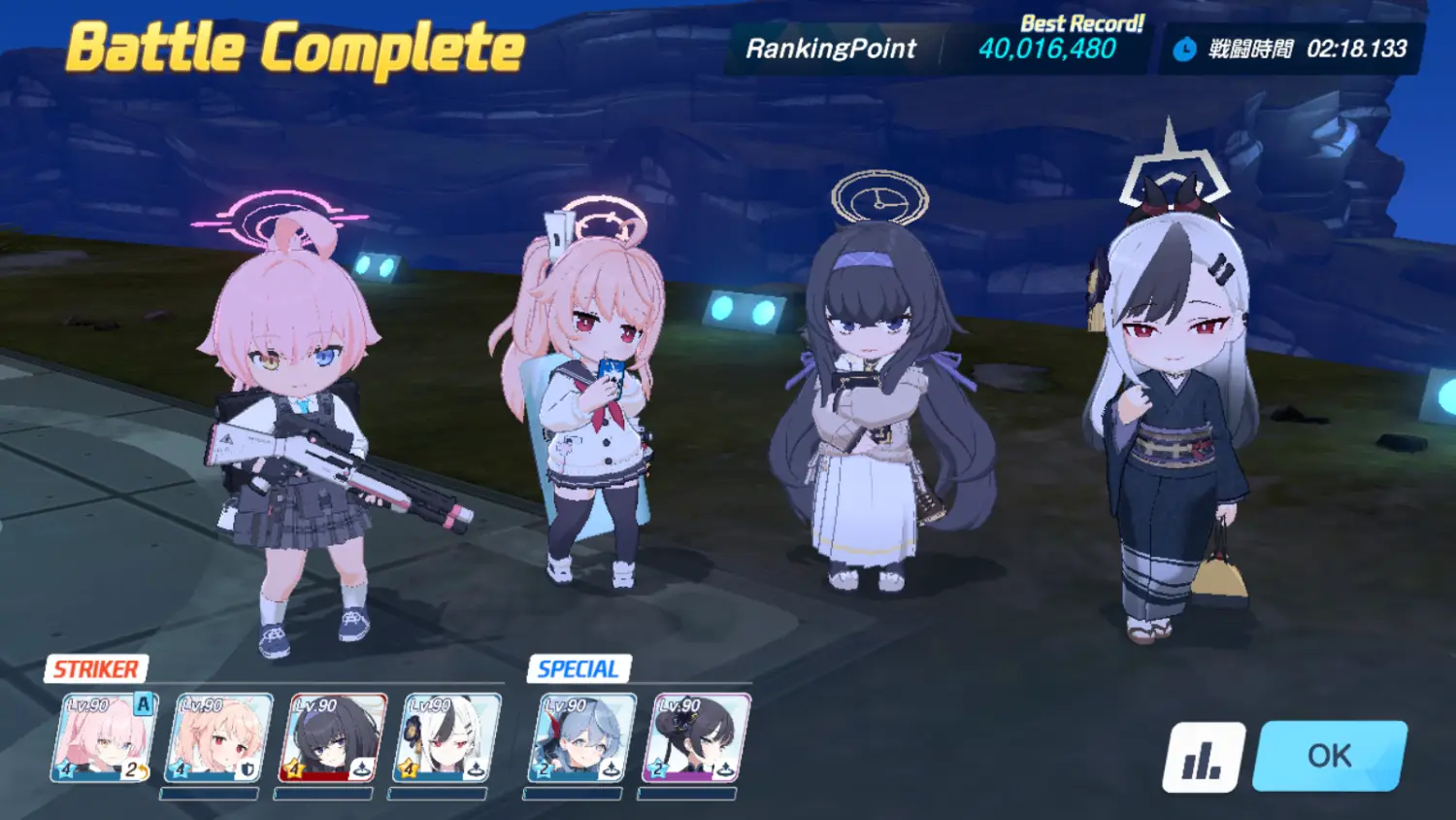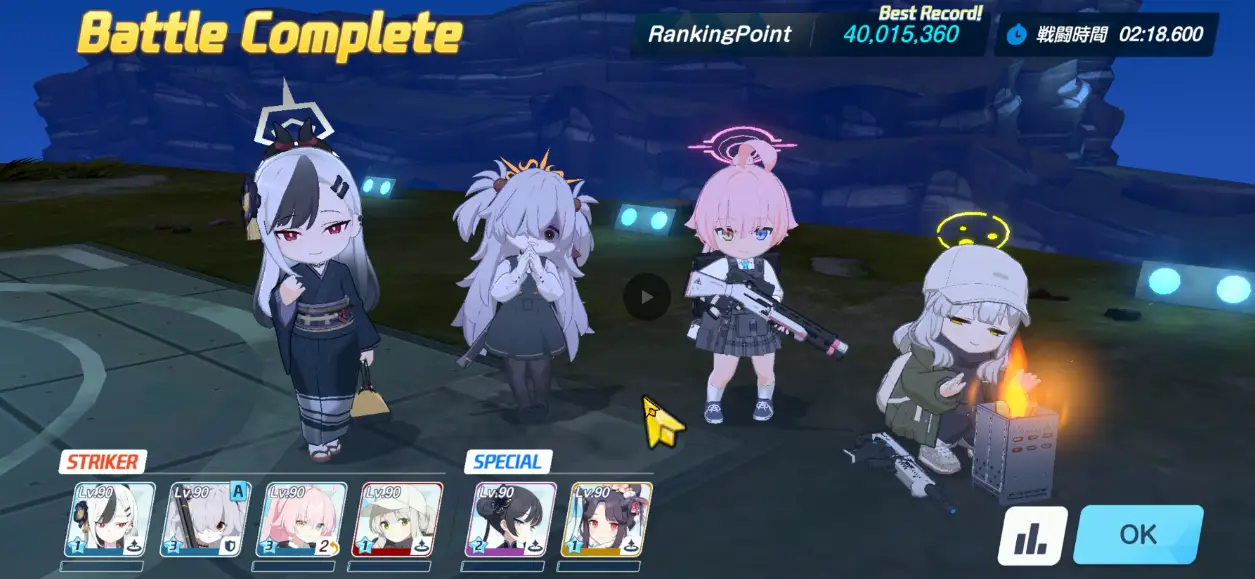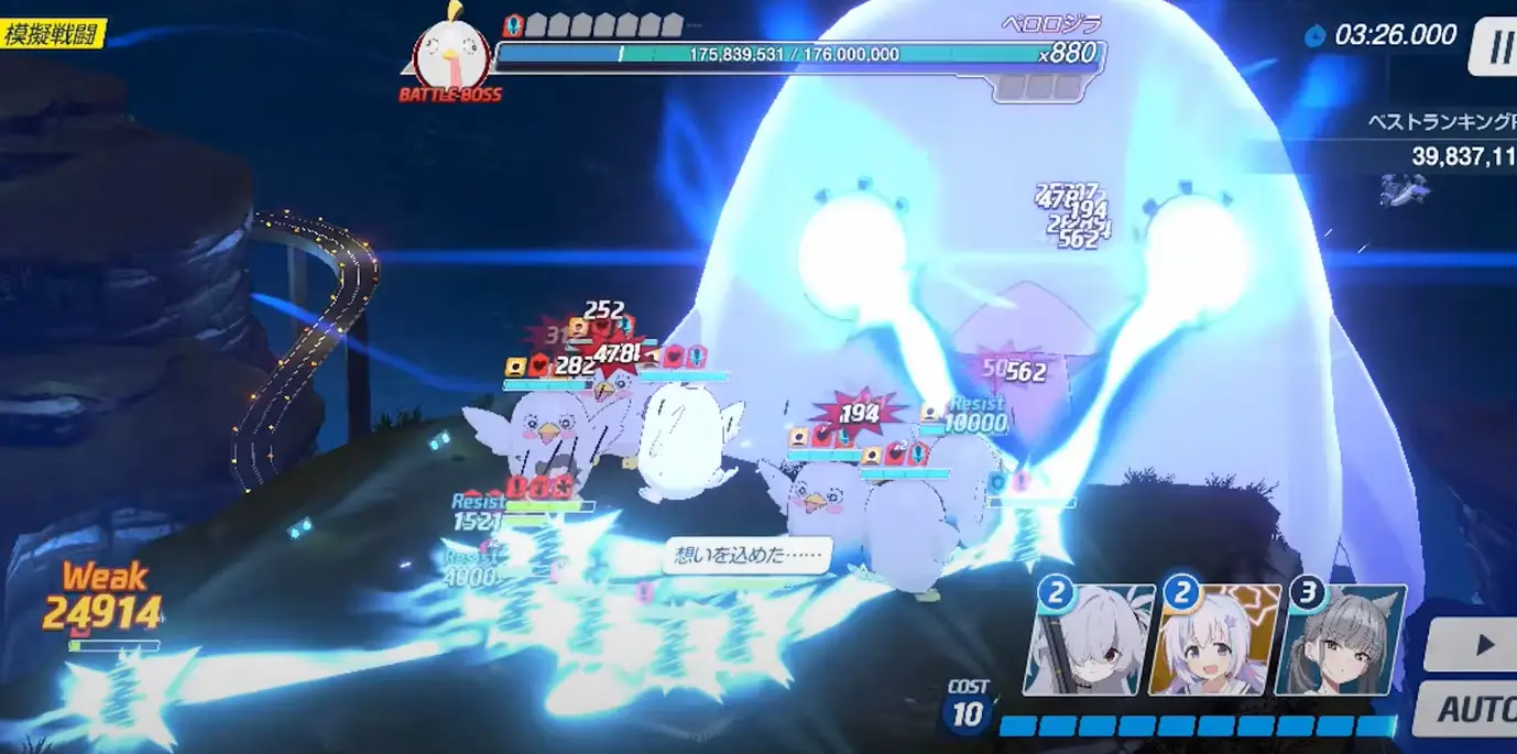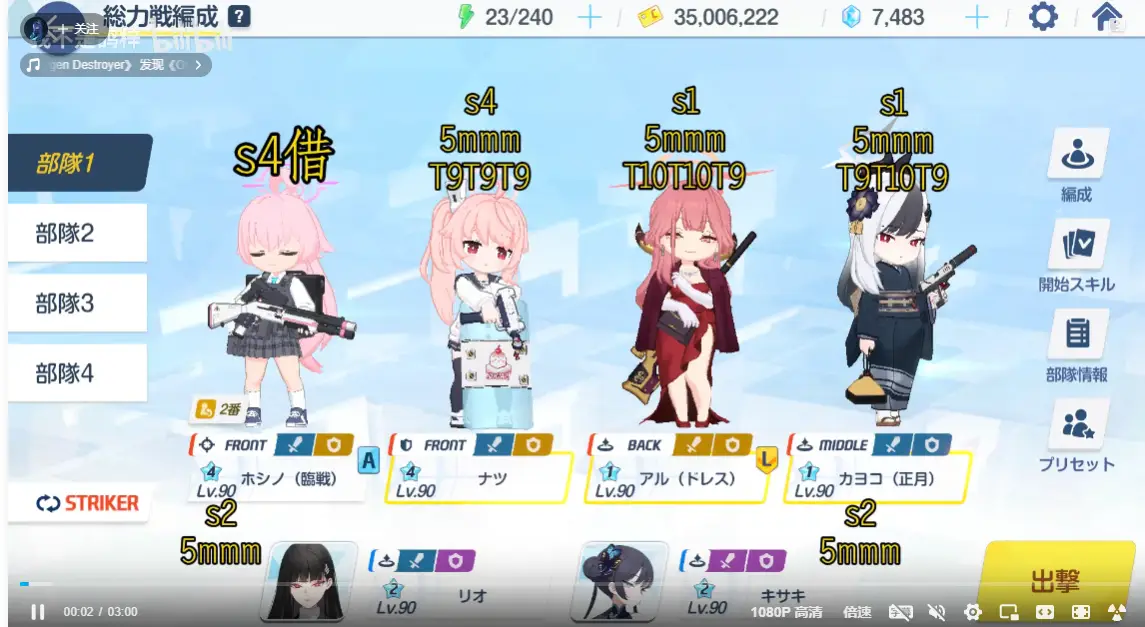 个人认为KK那个4005的打起来稳很多,凹成功最高40063、凹失败也有40023。扣除歪轴跟肥手指及最大问题的不爆击,唯一纯运气凹点只有开场20秒的小鸡。连P2春佳开EX停止移动都有双重保险,时间对还有NS扛你手滑EX没放好