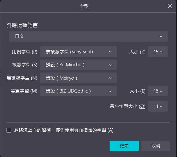 忽略您上面的选择 优先使用页面指定的字型 这个有取消打勾吗先停用所有扩充套件去试试