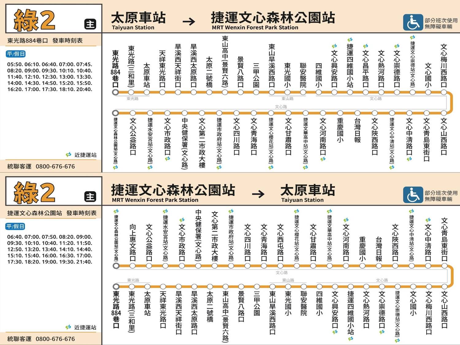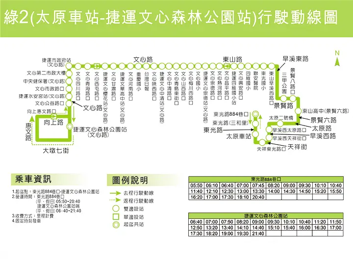 营运路线 台中市公共汽车 绿2 新光里-捷运文心森林公园站