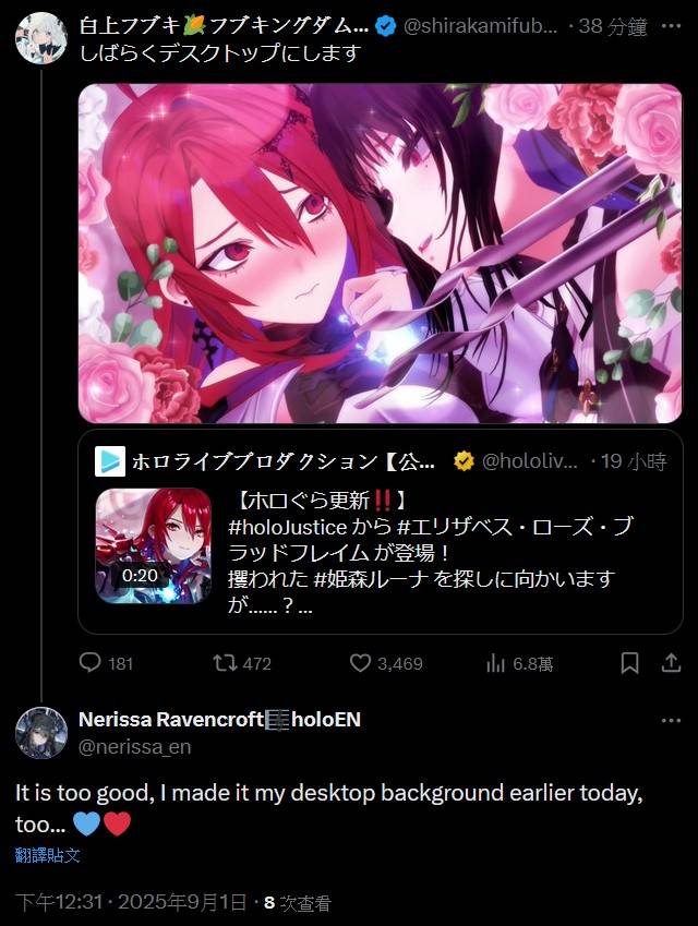 2025-09-01 13:01:00星街在推特说要搞百合妄想不要让他看到