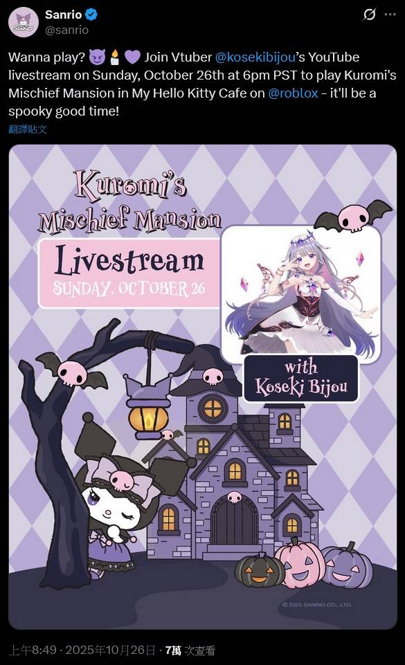 2025-10-26 07:40:25资料来源:https://schedule.hololive.tv/