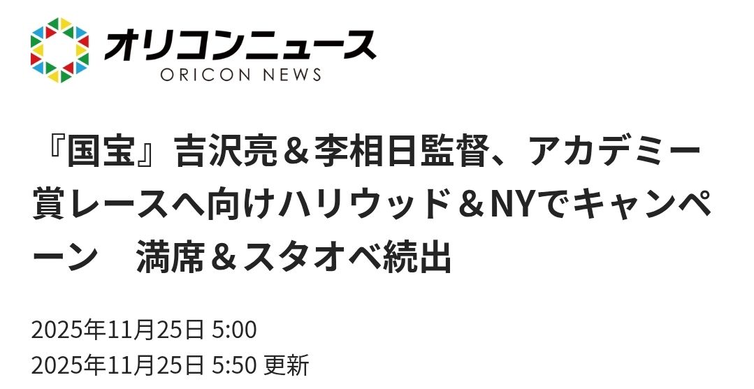 对,国宝北美还没上映,但有没有先做什么特映我不清楚?总之也有日本人发现国宝在奖季上根本晚了国宝2026年初才会在北美上映