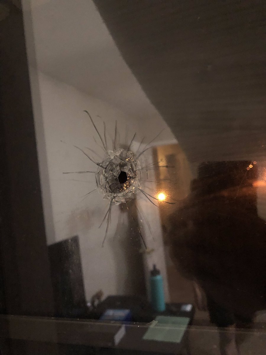 虽然枪击时他人不在萤幕前,但是弹孔都落在头部高度附近,凶险异常