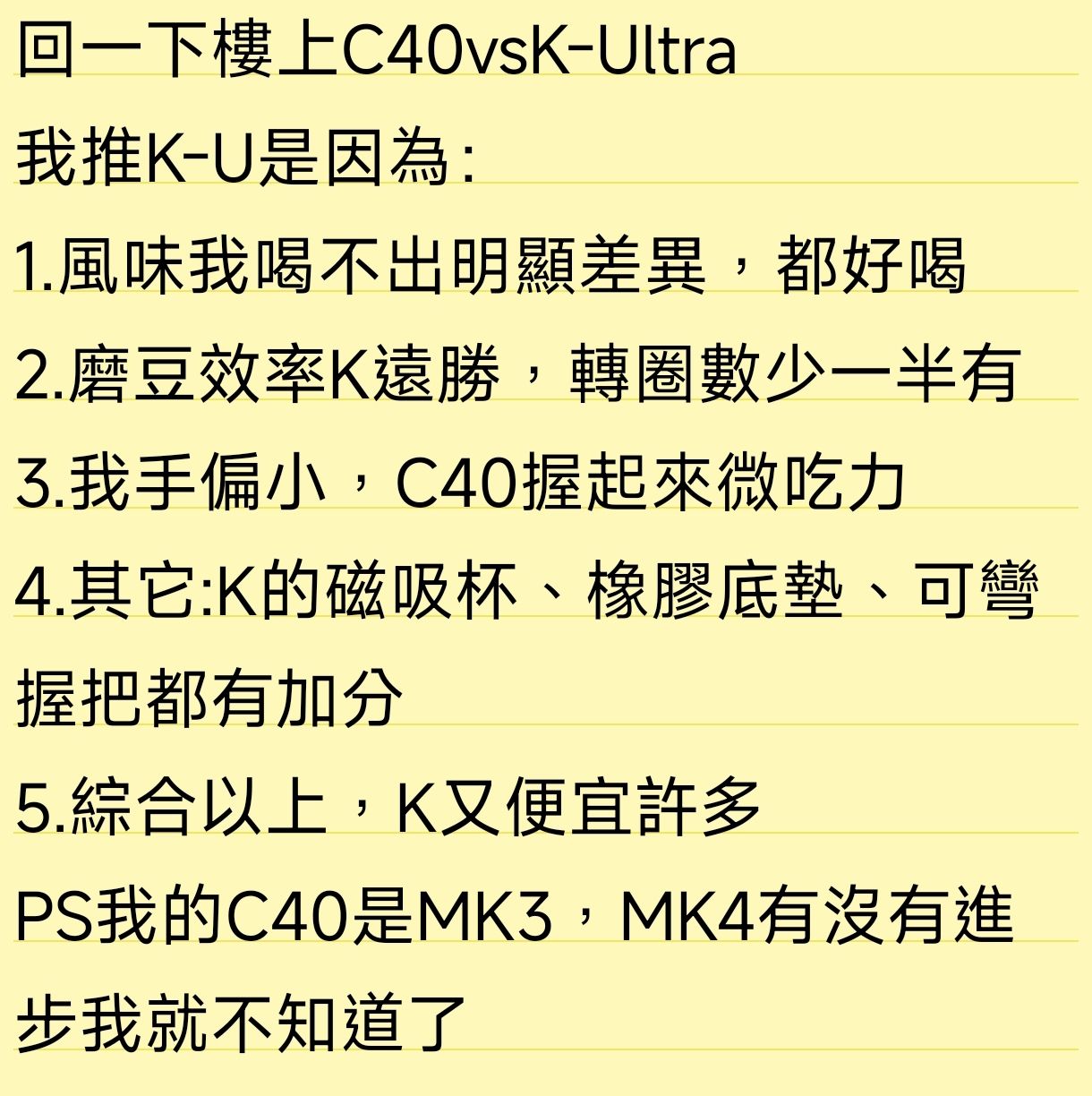 楼上m大,我也是都有,但我比较喜欢C40的风味,想问一下你KU归零点和手冲使用的刻度是?