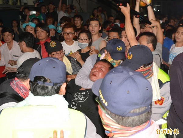 : 鞋子、拳头齐飞,现场一片混乱。(记者汤世名摄)
