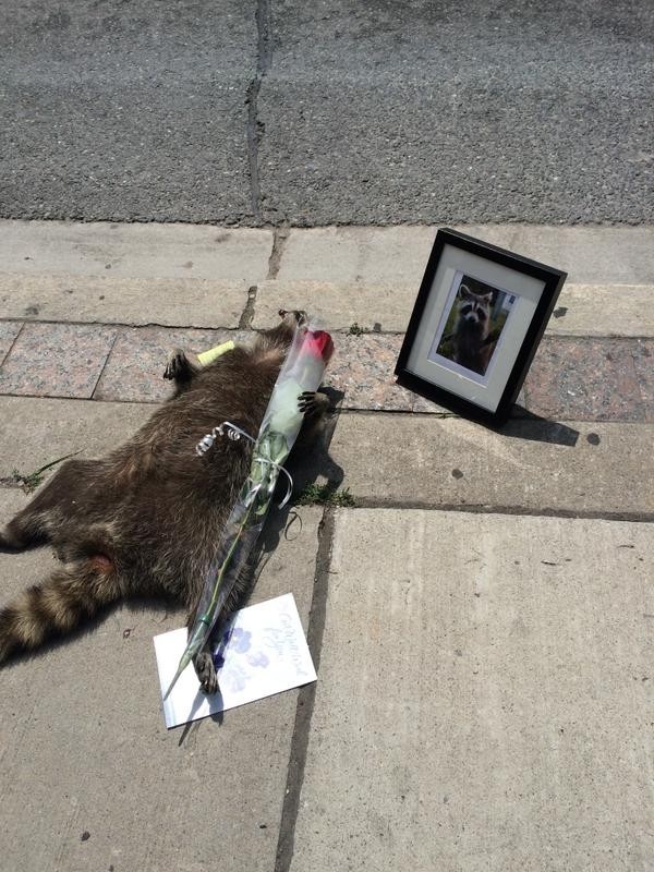 一只死亡的浣熊9日早上9时许被人发现陈尸加拿大多伦多的人行道旁,
