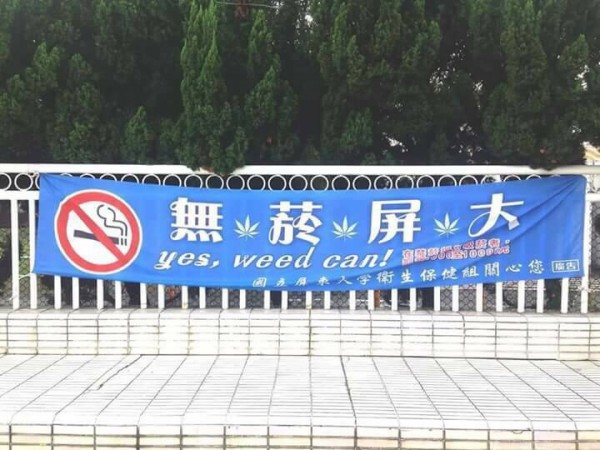 〔即时新闻/综合报导〕屏东大学推广无菸,但宣传布条却说“大麻,可以”?网传离谱