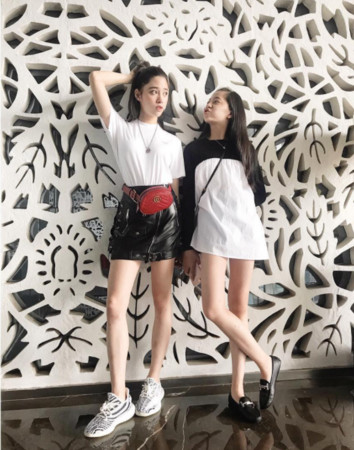 姊妹俩的合照,妹妹一双逆天长腿引发网友惊叹不已,没想到妹妹转眼间“怎么感觉要一