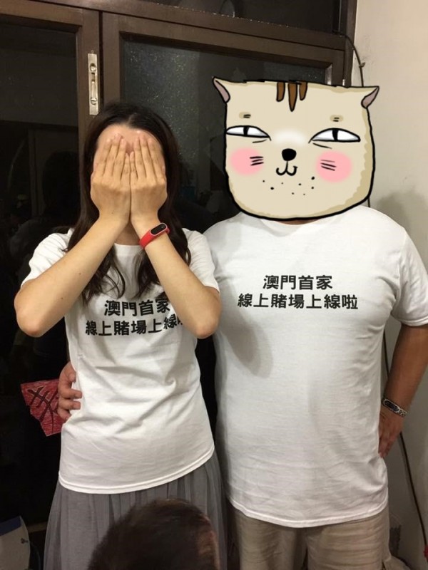 。仔细一看照片,白色衣服上印着“澳门首家线上赌场上线啦”等字样。而“澳门首家线