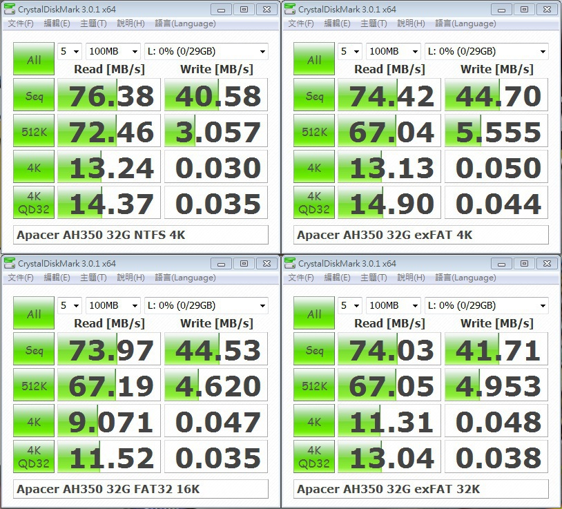 ◎硬件型号:1.宇瞻 AH350 USB3.0 32GB