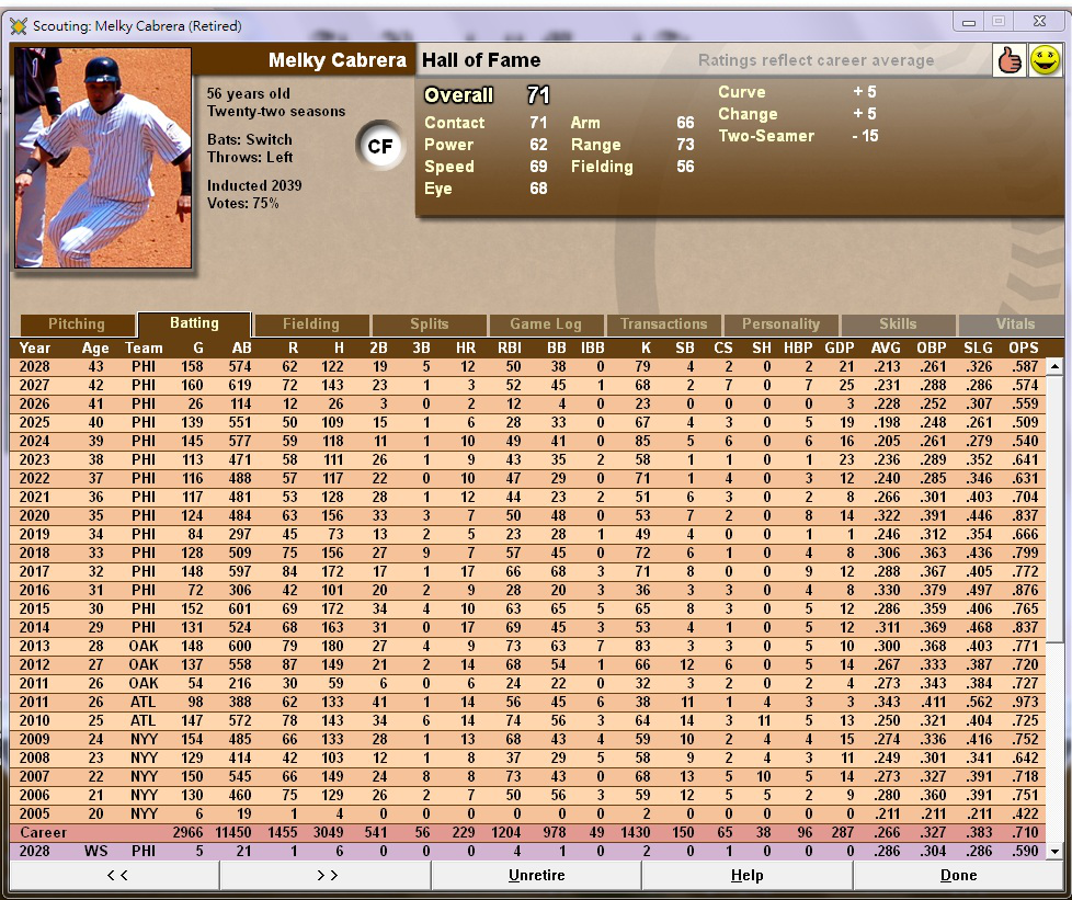 Baseball Mogul可以把Melky练成生涯AVG.3 3000H!