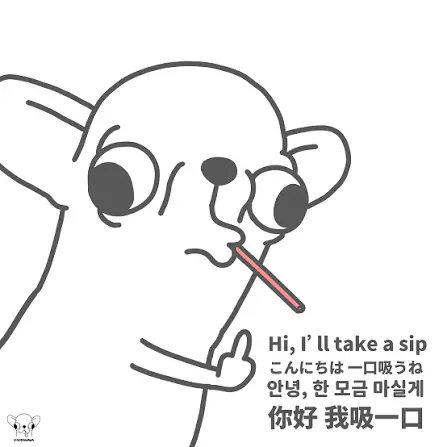 : 把珍珠奶茶的粉圆吸出来用嘴唇含者