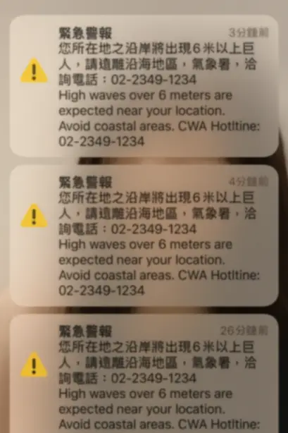 还有六米巨浪警报喔