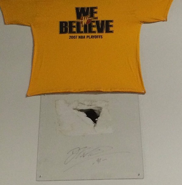 直到今日,那面墙上还留着一个洞,一件2007年勇士队的“We Believe” T-shirt以及