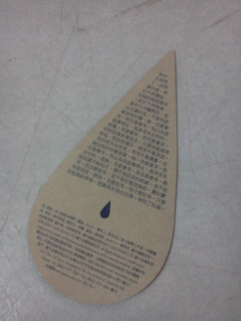 这是水滴的背面,上面写的是怎么会哭的歌词。