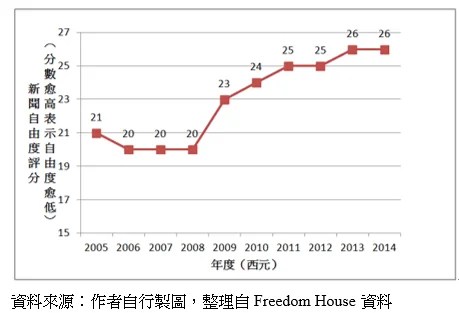 根据自由之家(Freedom House)的调查报告,台湾的新闻自由度从2008年开始出