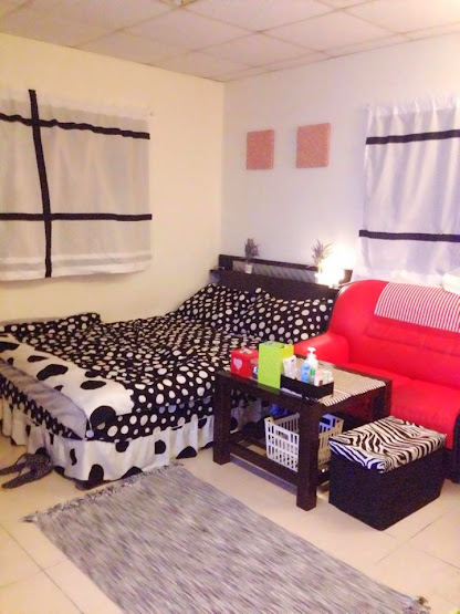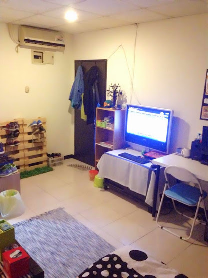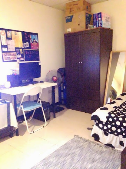 设备:大型液晶电视(不知道是几吋)、原木衣橱、沙发、小方桌、冷气、电热水器、