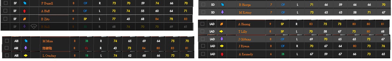 HOU 1 COL 3 CHC 4 CIN 3 STL 2 PIT 2