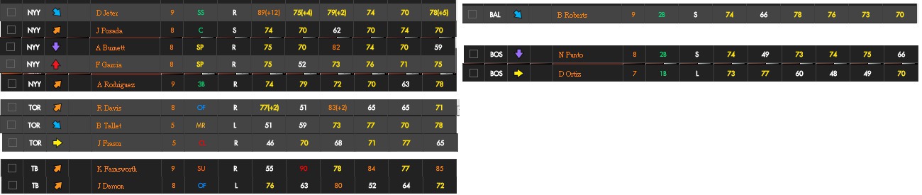 NYY 5 BAL 1 BOS 2 TOR 3 TB 2