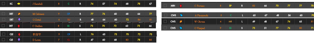 KC 1 DET 3 CLE 2 MIN 1 CWS 3