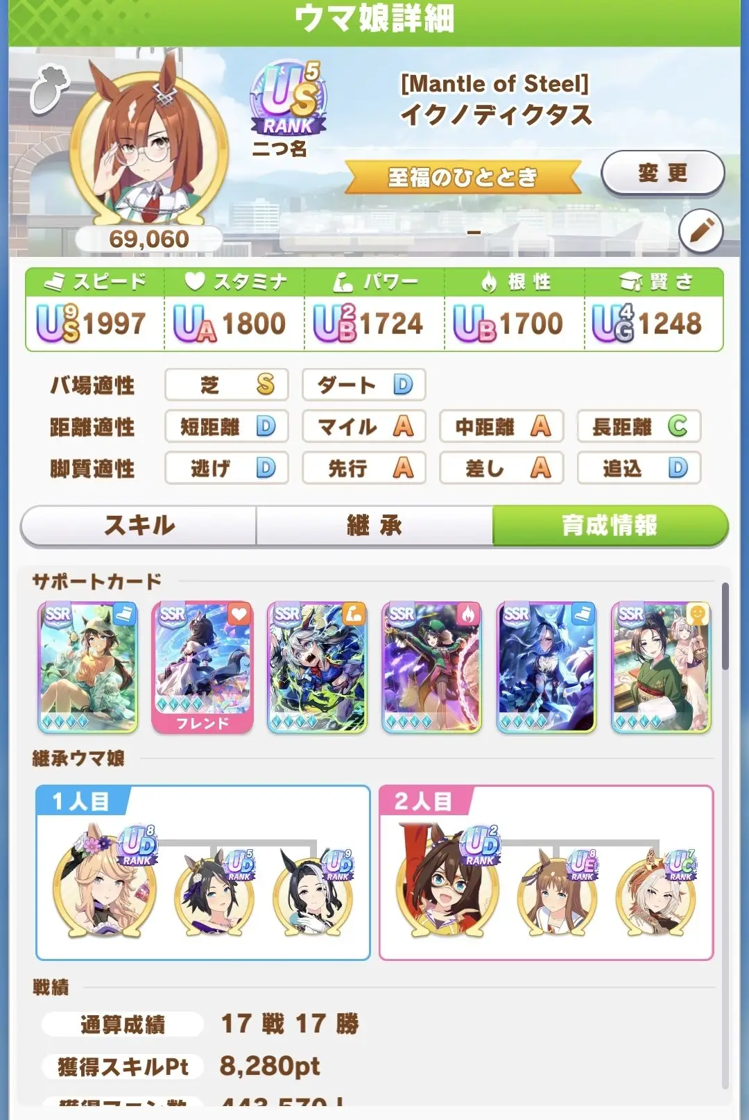 2025-10-30 17:34:00你要耐就是21101啊 宇宙很难练的 他这次设计是速训最后才强温泉BONUS设计上 速友情训练前面给超少 后面给超多其他属性都是平滑给的 就你速度最特别 所以单速不是那么好练