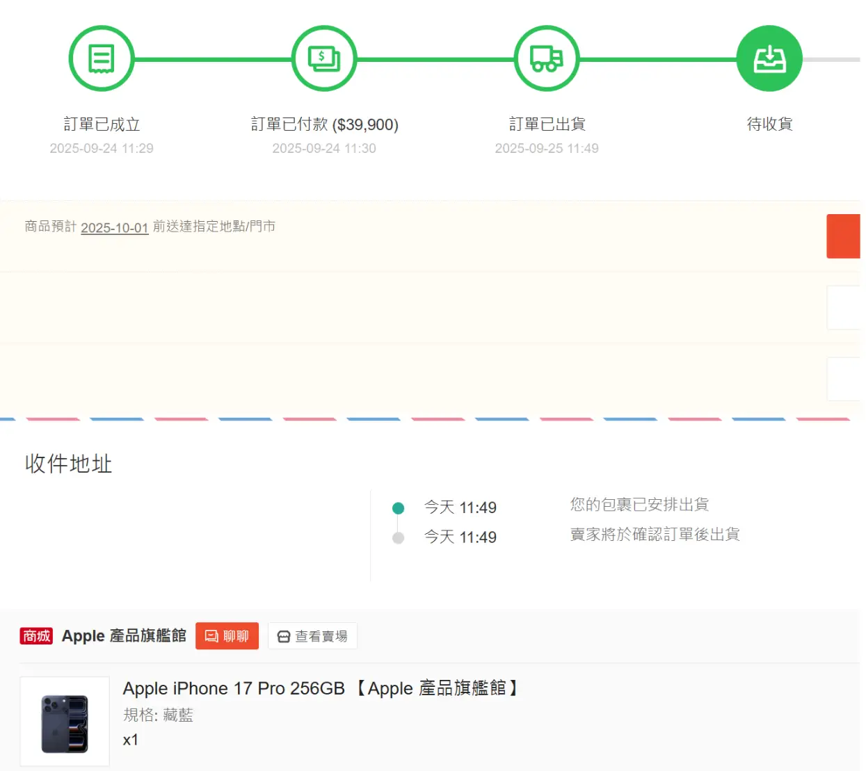 2025-10-03 15:24:00刚虾皮的苹果旗舰店补了6支17pm256橘,换张信用卡要结帐时就没了…有没有这么夸张