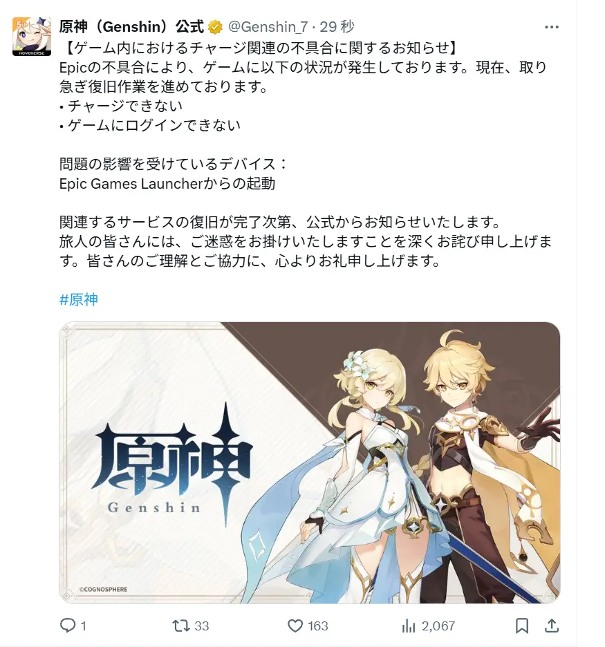 绝推特有公告了 好像epic有问题再修复